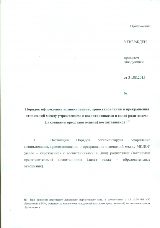 Порядок оформления возникновения, приостановления и прекращения отношений между образовательной организацией и обучающимися (воспитанниками) и (или) родителями (законными представителями) несовершеннолетних